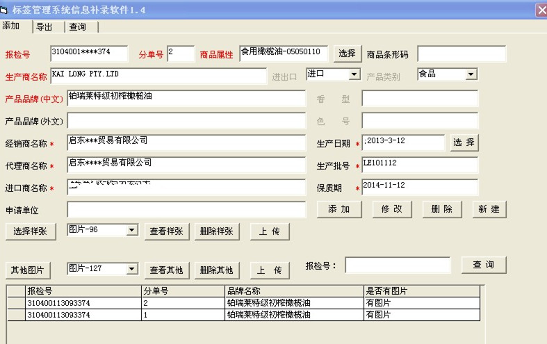 5. 进口货物标签备案表/原标签样张及翻译文/中文标签样张/经销商营业执照复印件