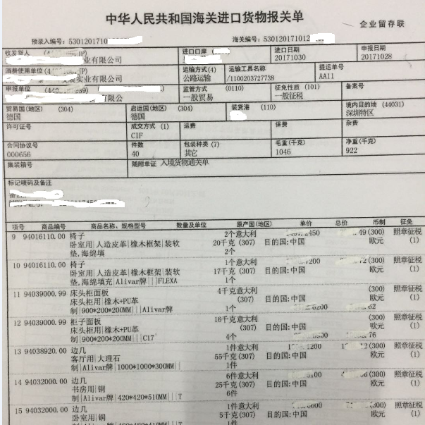 报关需要资料:货物的规格尺寸,货值,产地,牌子型号,净重毛重,件数。只要有这些货物信息,家具基本就可以清关了,不需要其他特殊单证。